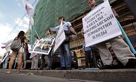 членами профсоюза граждан России и партии "Новая Великая Россия", у посольства США.