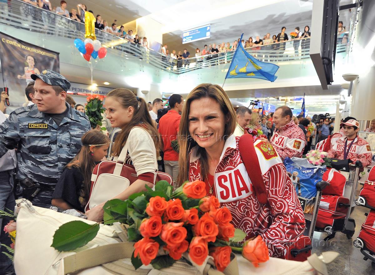 Церемония торжественной встречи официальной олимпийской делегации из Лондона, в аэропорту Шереметьево в терминале D.