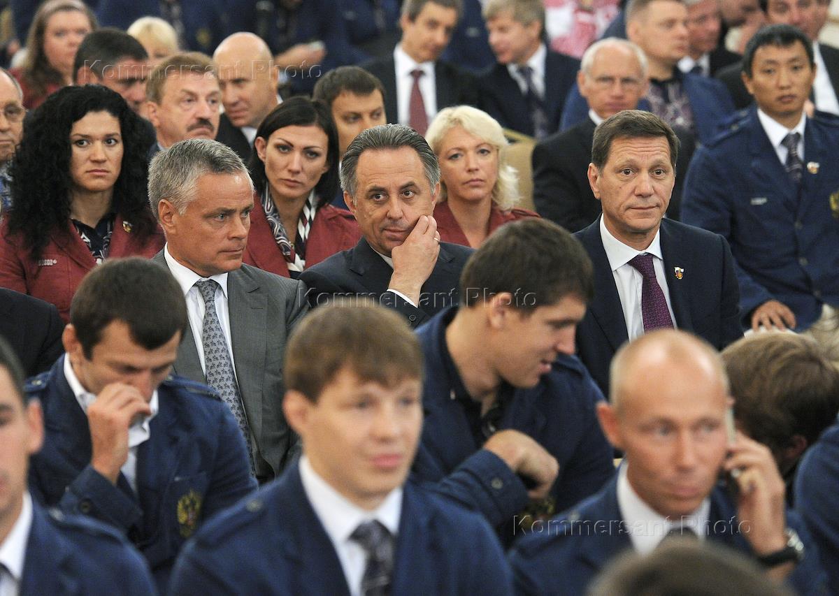 Советник президента России Александр Абрамов (второй слева), министр спорта России Виталий Мутко (в…