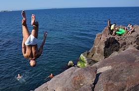 Жанровая фотография. Прыжок со скалы в Черное море.