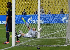 Плей-офф Лиги чемпионов УЕФА. Футболист Дирк Кюйт (слева) и Марек Сухи (справа) во время матча между…