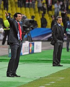 Плей-офф Лиги чемпионов УЕФА. Главный тренер команды "Спартак" Унаи Эмери (слева) и главный тенер…