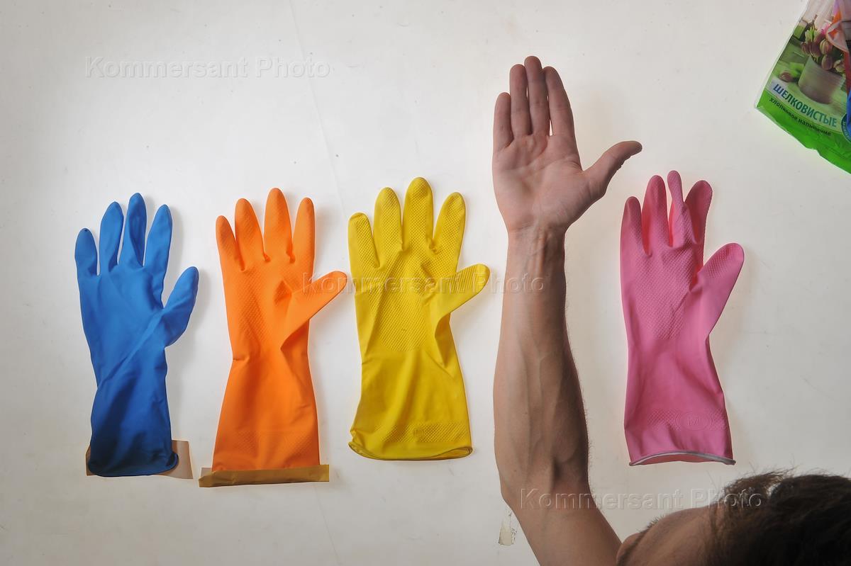 Обложка журнала "Деньги". Рука и цветные резиновые перчатки