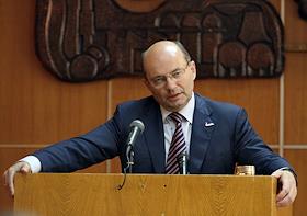 Губернатор Свердловской области Александр Мишарин (в центре) во время посещения ОАО…