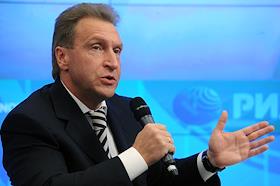 Первый заместитель председателя правительства России Игорь Шувалов во время пресс-встречи на тему…