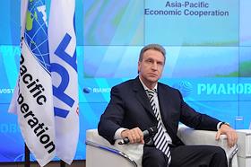 Пресс-встреча на тему "Председательство России в форуме "Азиатско-тихоокеанское экономическое сотрудничество" в РИА "Новости". Участники: первый заместитель председателя Правительства РФ Игорь Шувалов; старшее должностное лицо России в АТЭС Геннадий Овечко; директор департамента Азии и Африки министерства экономического развития РФ Сергей Чернышев; исполнительный директор делового консультативного совета Форума АТЭС 2012 Лейла Мамедзаде; заместитель директора Российского центра исследований АТЭС, чрезвычайный и полномочный посол РФ Глеб Ивашенцов и др.