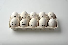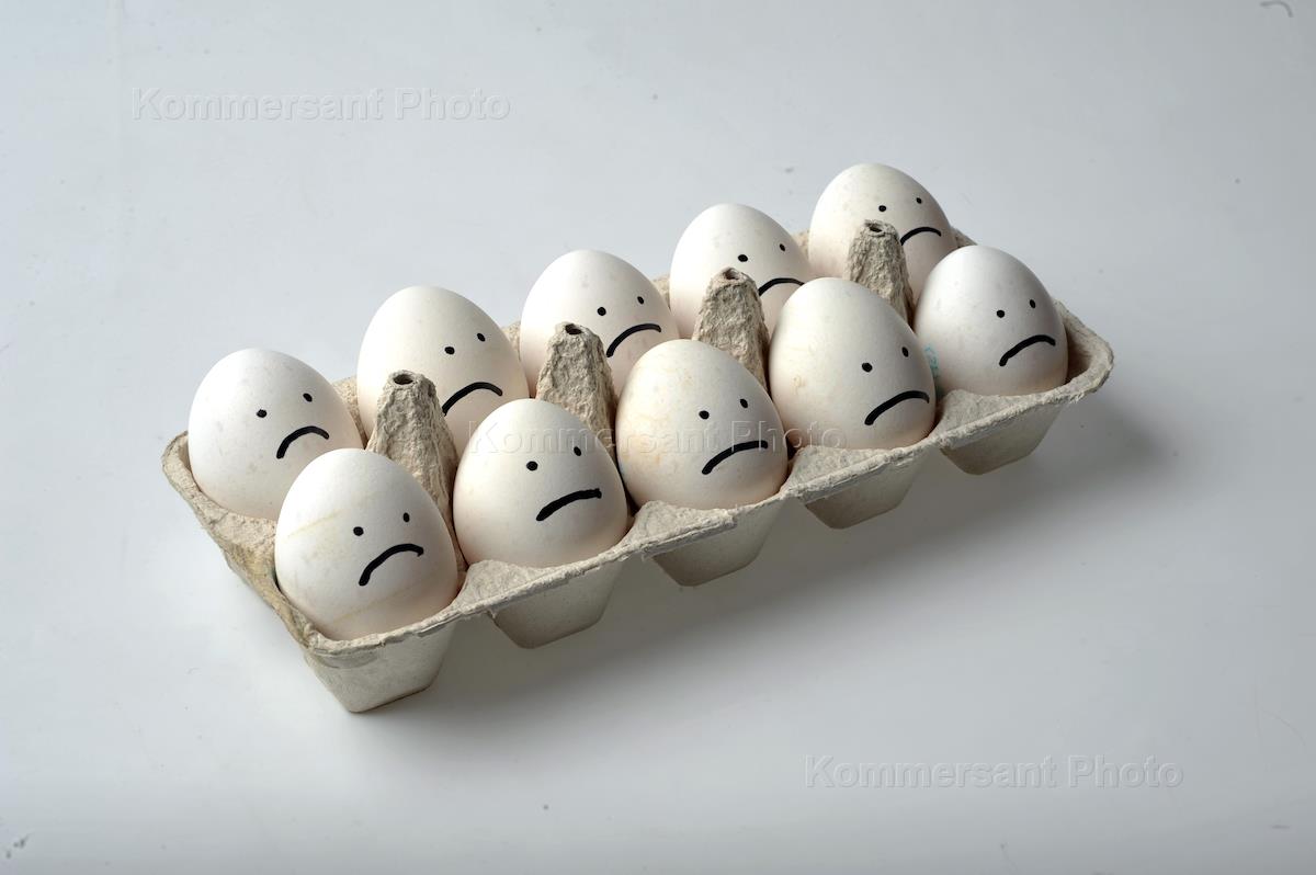 Обложка для журнала "Деньги". Яйца с нарисованными лицами в ячейке.