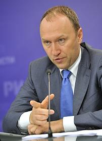 П/к руководителя департамента строительства города Москвы Андрея Бочкарева на тему "Новые строительные объекты москвичам ко Дню города", в Москве в РИА "Новости".