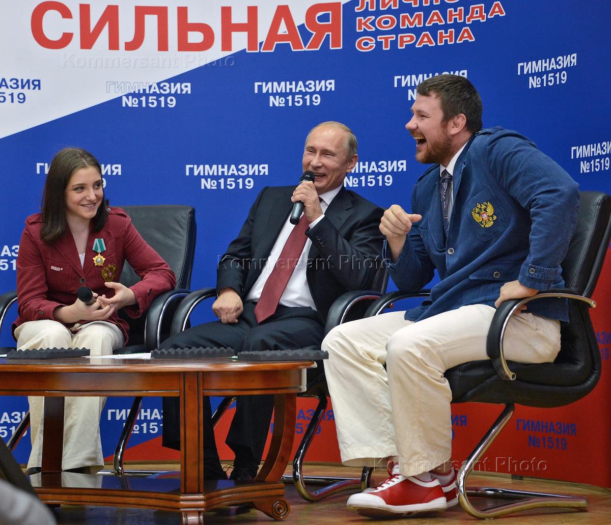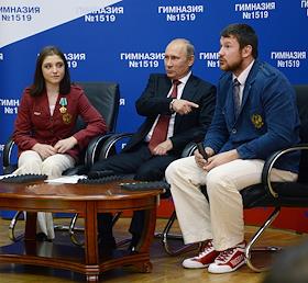 День знаний. Олимпийская чемпионка по спортивной гимнастике Алия Мустафина (слева), президент России…