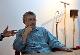 Художник Владимир Архипов на пресс-конференции, посвященной открытию галереи Red October в бывшем…