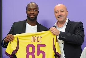 Презентация новых игроков Футбольного клуба (ФК) "Анжи".Игрок ФК "Анжи" Лассан Диарра во время…