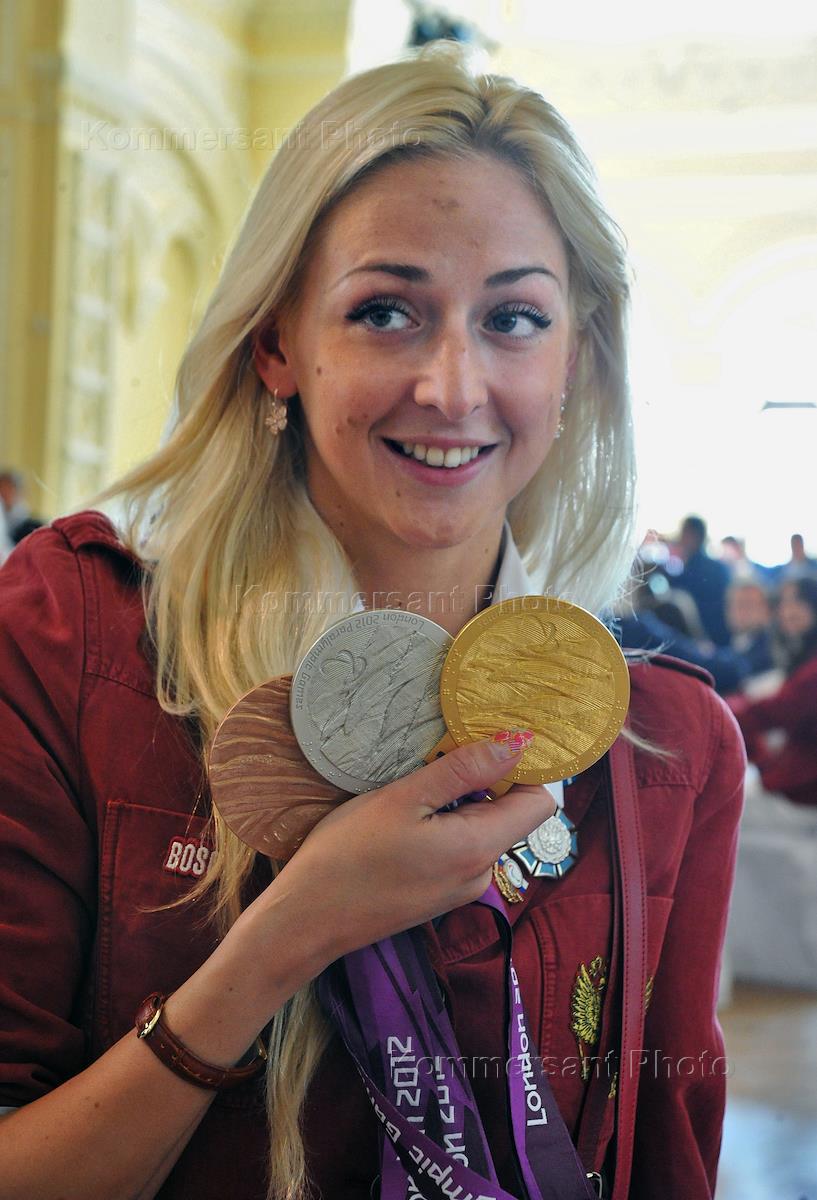 Член паралимпийской сборной России по плаванию Олеся Владыкина на церемонии чествования победителей…