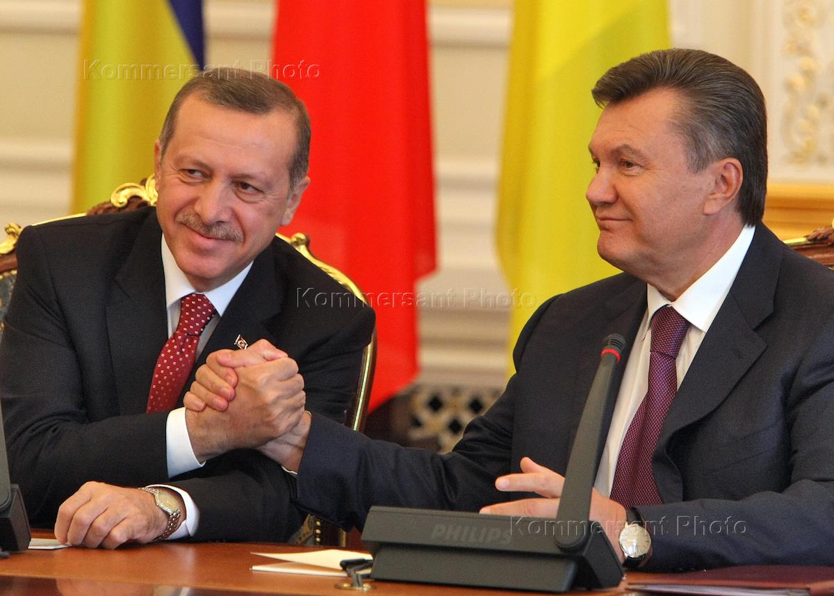 Премьер-министр Турции Реджеп Тайип Эрдоган (слева) и президент Украины Виктор Янукович (справа) во…