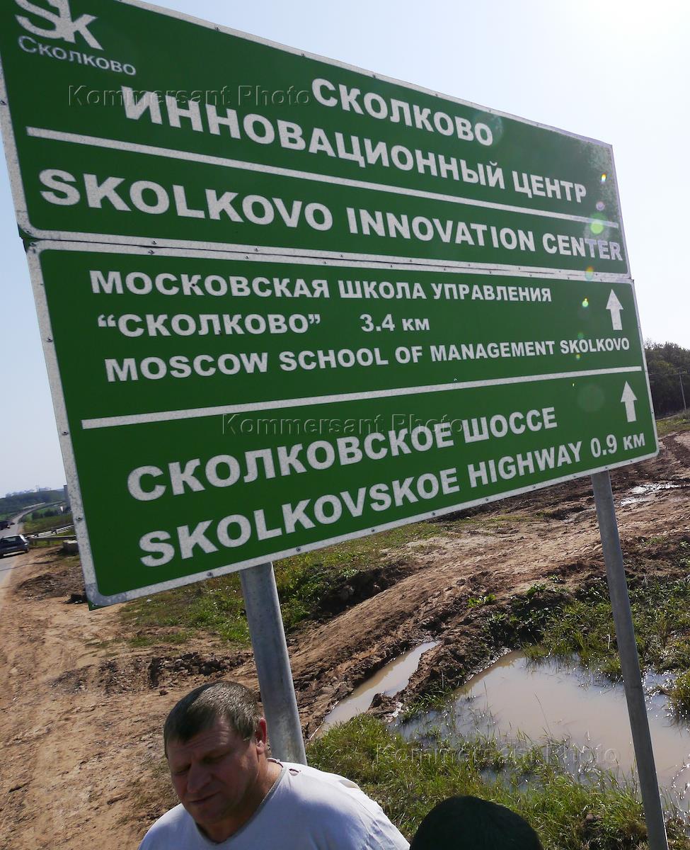 Инновационный центр "Сколково". Дорожный указатель на въезде на территорию центра.