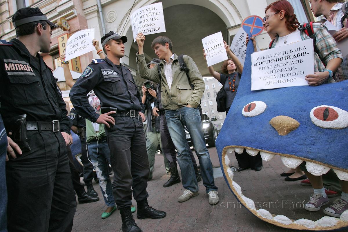 Светская жизнь Заседание Киевского городского совета. Акция протеста против реконструкции Гостиного двора. Акция протеста с требованием принять мораторий на предоставление русскому языку статуса регионального в Киеве. Митинг, организованный Ассоциацией автокооперативов Киева.