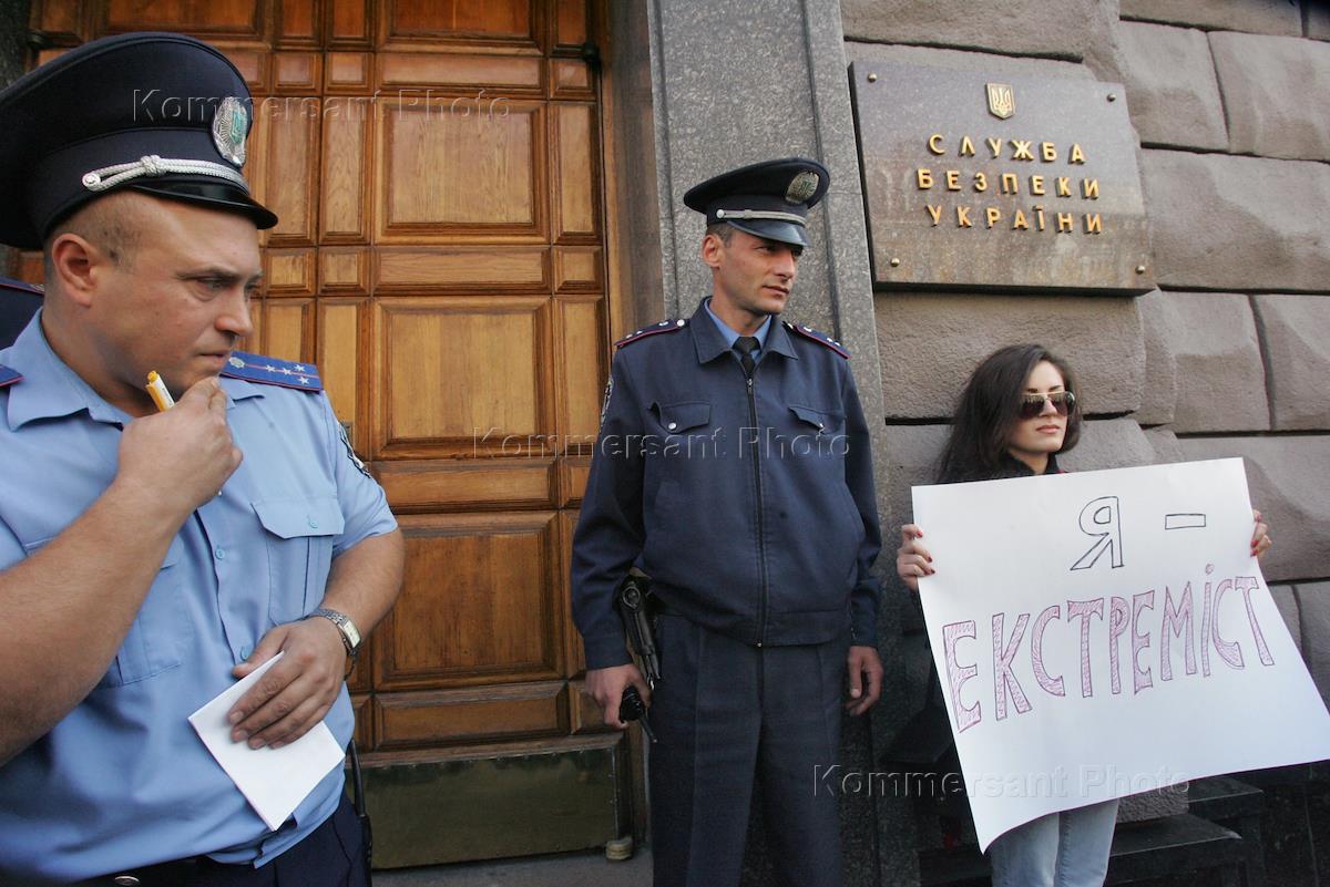 Акция под зданием Службы безопасности Украины (СБУ), организованная активистами Коалиции участников помаранчевой революции (КУПР).
