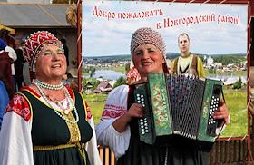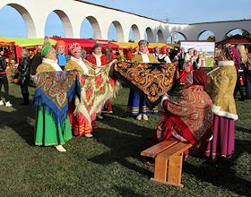 Сельскохозяйственная ярмарка на Ярославовом дворище. Выступление участников народного ансамбля.