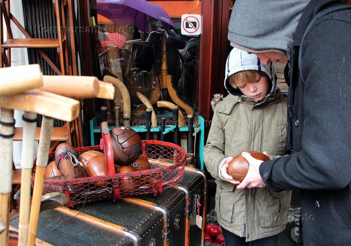 Виды Лондон. Блошиный рынок на Портобелло роад. Лавка по продаже спортивного инвентаря.