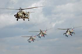 Пилотажная группа "Беркуты" на вертолетах Ми-24 во время выступления.