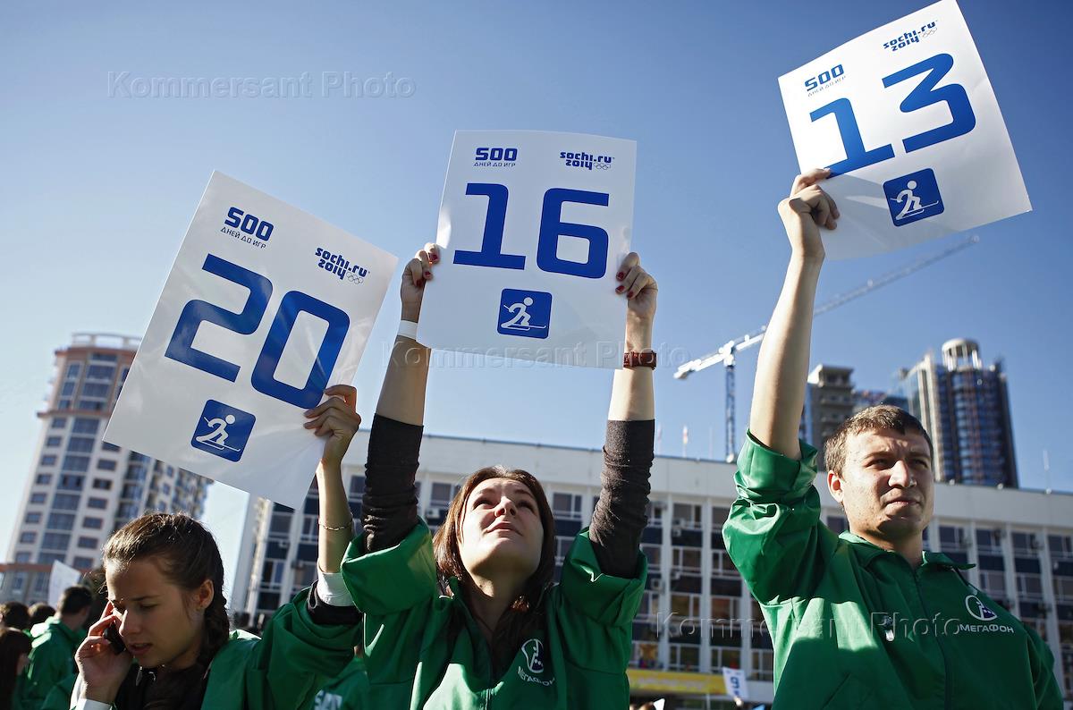 Флешмоб и эстафеты "Олимпийские старты" в ознаменование 500 дней до Игр в Сочи, на Театральной площади.