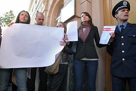 Акция журналистов за свободу слова (против законопроекта о клевете) прошла возле здания комитета…