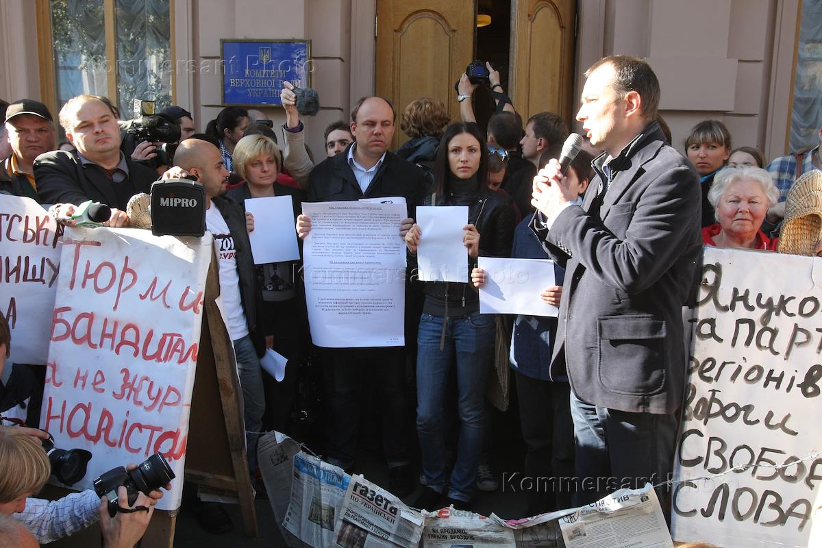 Акция протеста журналистов против законопроекта народного депутата Виталия Журавского о клевете.