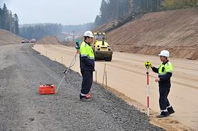 Строительство трассы "Москва - Санкт-Петербург" на участке с 15 по 58 км. Укладка дорожного покрытия…
