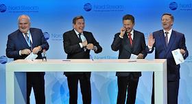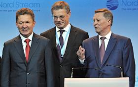 Церемония пуска в эксплуатацию второй ветки газопровода "Северный поток". Слева направо: управляющий…