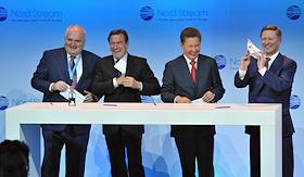 Церемония пуска в эксплуатацию второй ветки газопровода "Северный поток". Справа налево: управляющий…