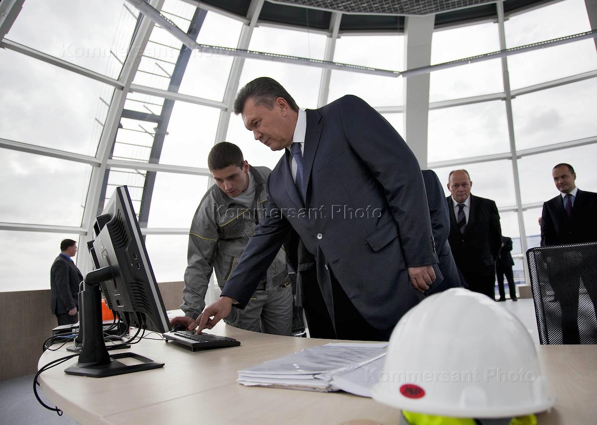 Президент Украины Виктор Янукович (в центре) во время церемонии введения в эксплуатацию Ботиевской…
