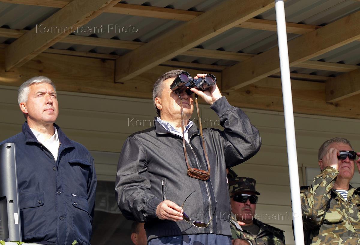 Президент Украины Виктор Янукович (слева) во время посещения 240-го центра подготовки подразделений…