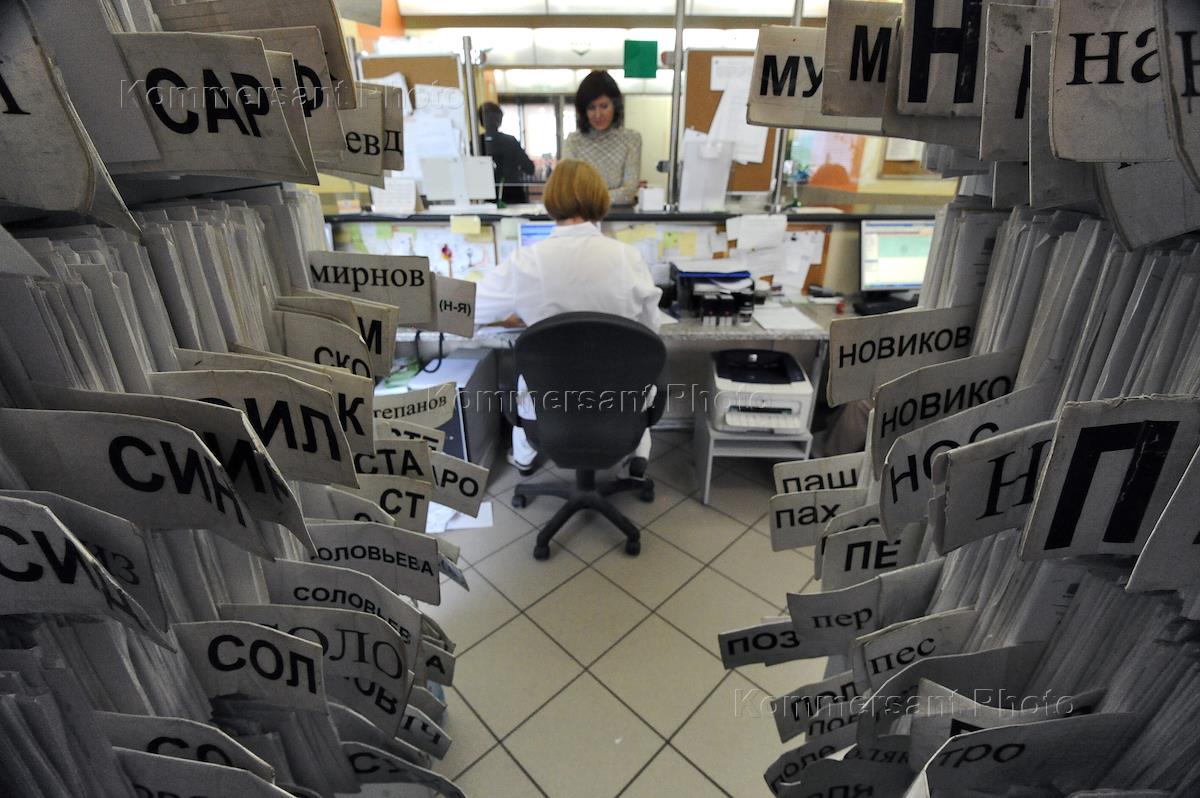 Многопрофильная клиника "Центра эндохирургии и литотрипсии" (ЦЭЛТ). Карты пациентов в регистратуре…