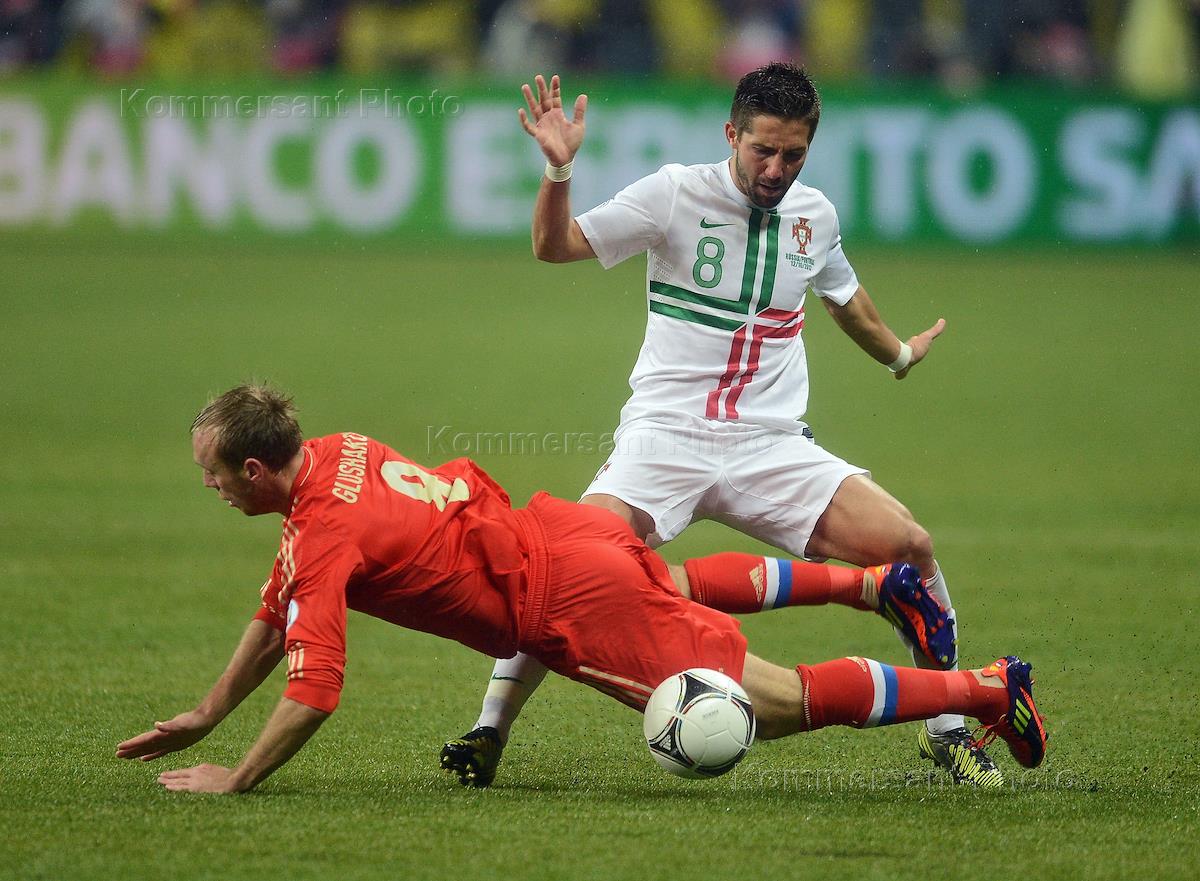 Отборочный матч чемпионата мира-2014 по футболу. Игрок сборной команды России Андрей Ещенко 9слева)…