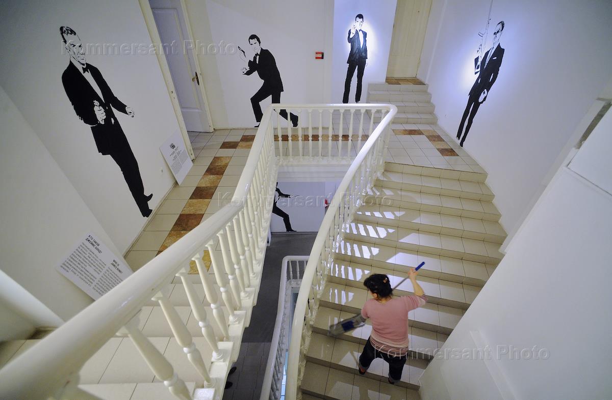 Подготовка к открытию выставки "Bond by GQ" в государственной галерее на Солянке.
