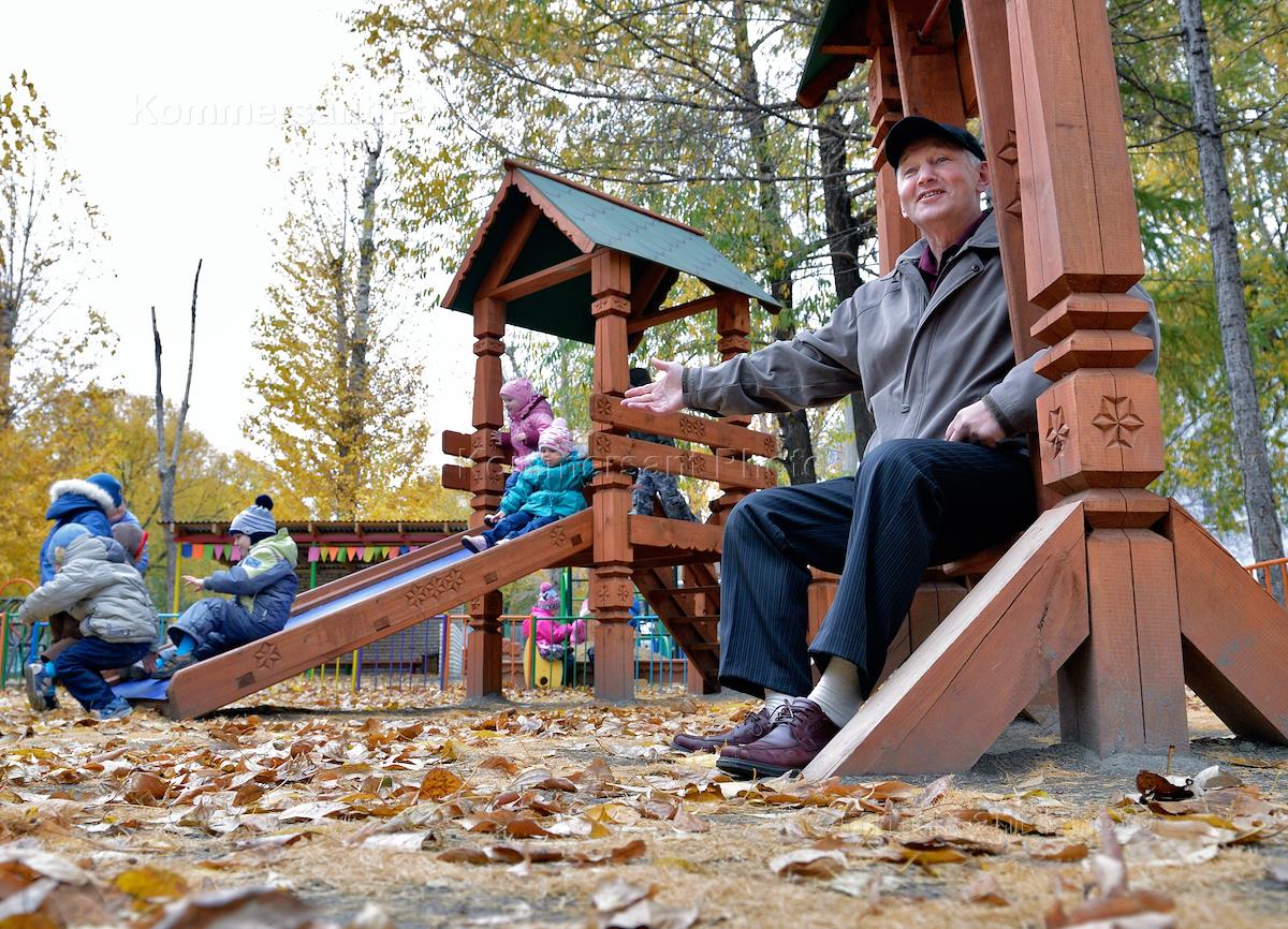 Владелец компании "Уютный дворик" Валерий Звигинцев на детской площадке.