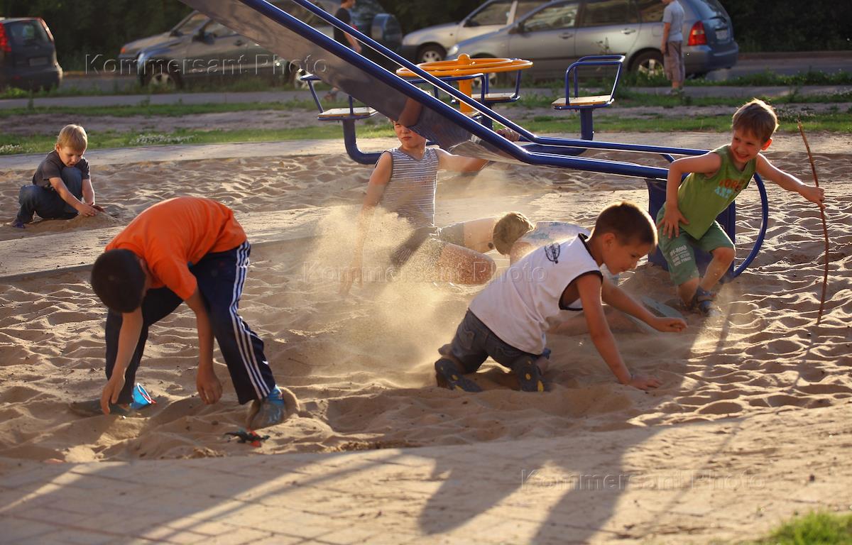 Дети играют на детской площадке во дворе