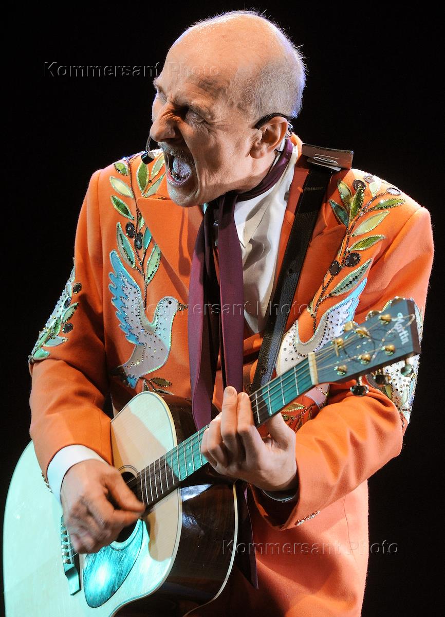 Музыкант, актер Петр Мамонов во время премьеры своего спектакля "Дед Петр и зайцы" на сцене…