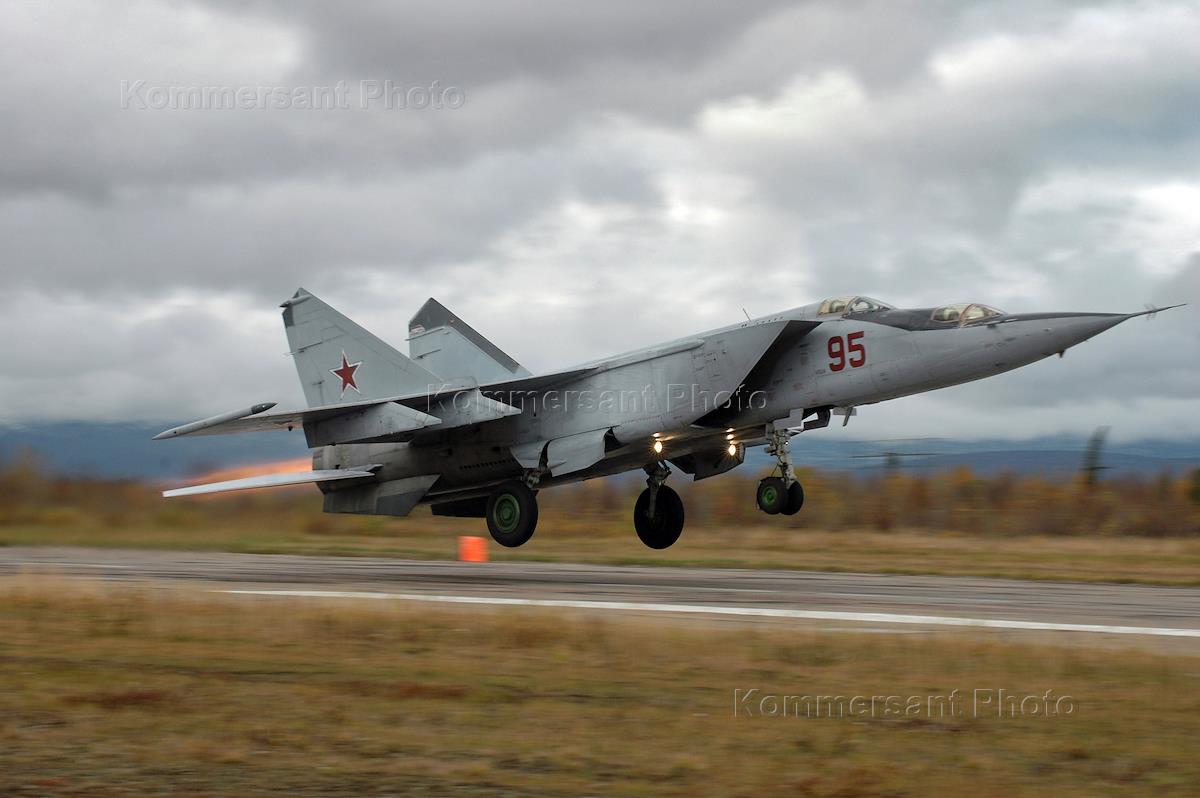 Самолет-разведчик МиГ-25РБ на рулежной дорожке авиабазы Мончегорск.