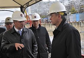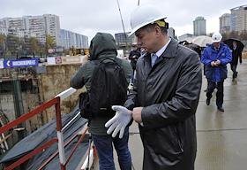 Мэр Москвы Сергей Собянин во время осмотра строительства станции метро "Тропарево".