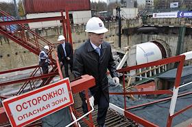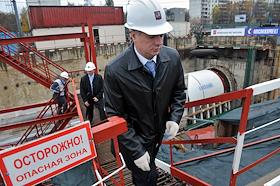 Мэр Москвы Сергей Собянин во время осмотра строительства станции метро "Тропарево". Запуск проходческого щита.