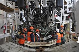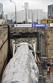 Проходческий щит на строительстве станции метро "Тропарево" Сокольнической линии московского…