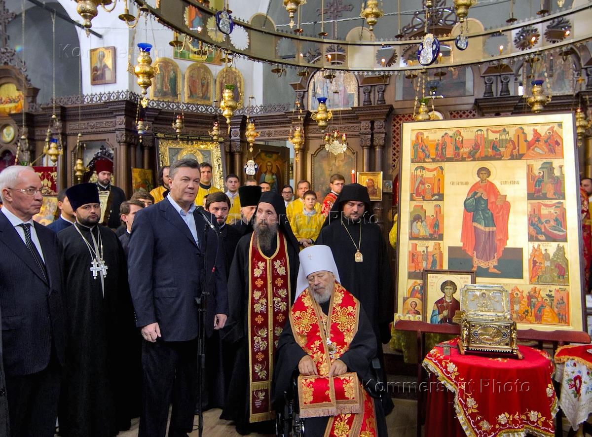 Президент Украины Виктор Янукович (в центре) на открытии подворья Афонского Свято-Пантелеимоновского…