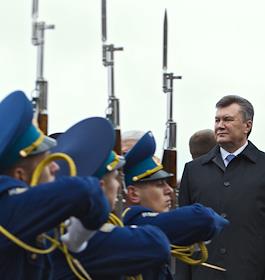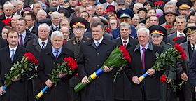 Президент Украины Виктор Янукович (справа) во время мероприятий приуроченных к празднованию 68-й…