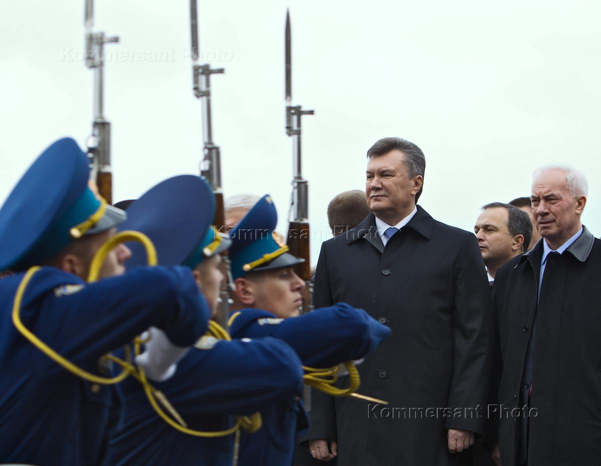 Президент Украины Виктор Янукович (в центре) и премьер-министр Украины Николай Азаров (справа) во…