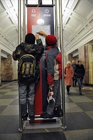 Жанровая фотография. Дети у схемы московского метрополитена на станции метро…