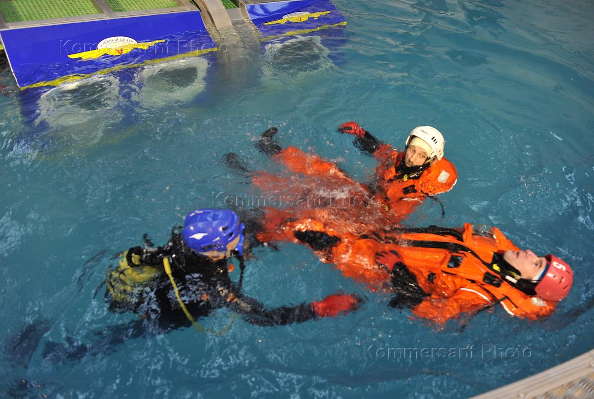 Тренинг по спасению жизни в воде при полетах на вертолете в учебном центре "Вега".