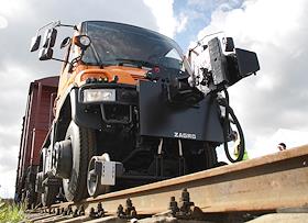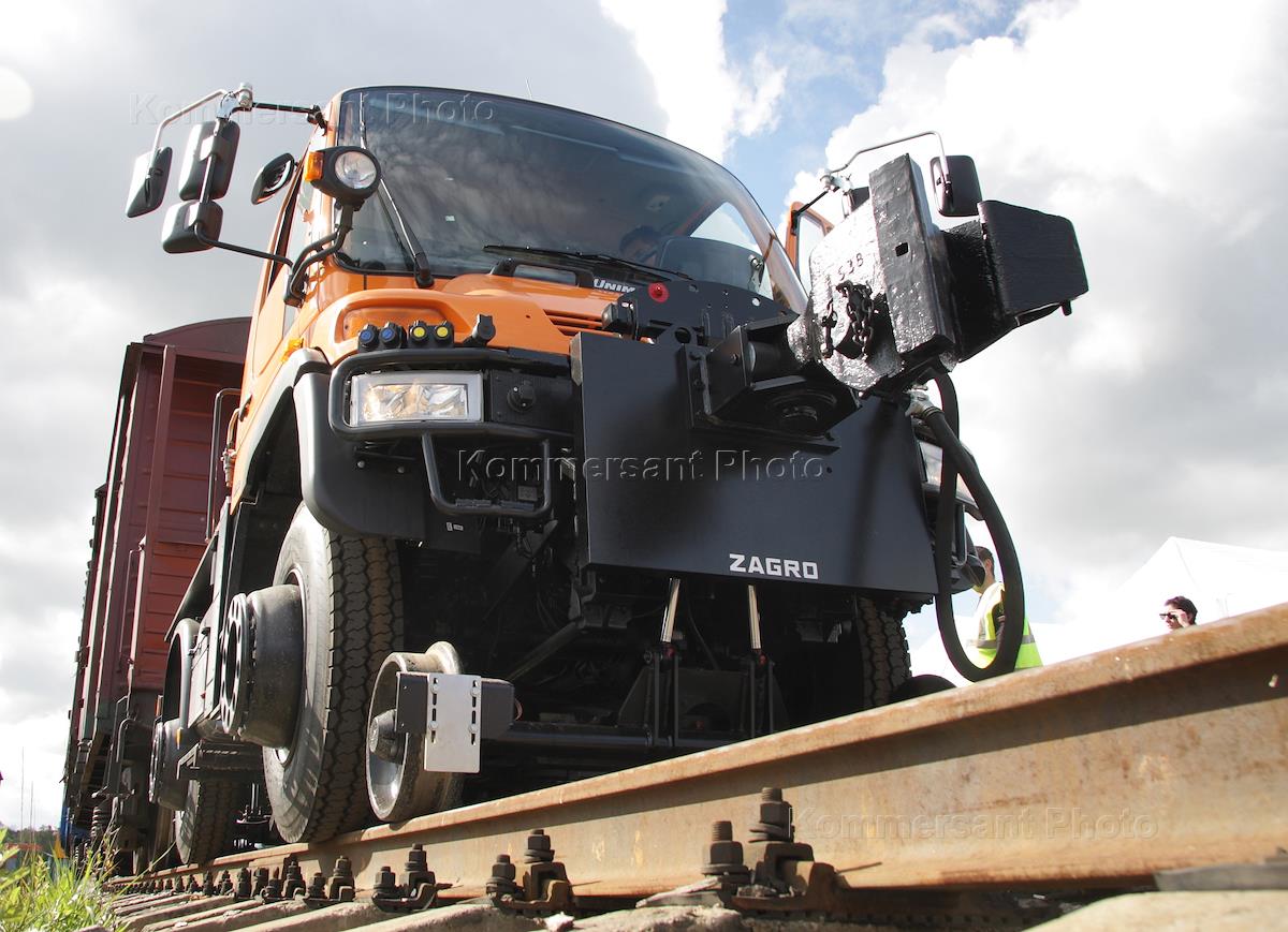 Локомобиль (железнодорожная версия) "Mercedes-Benz Unimog" компаний "Mercedes-Benz" и "Daimler AG".