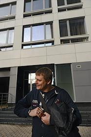 Актер Александр Носик во время осмотра подземной автомобильной стоянки в жилом комплексе "Фьюжн".