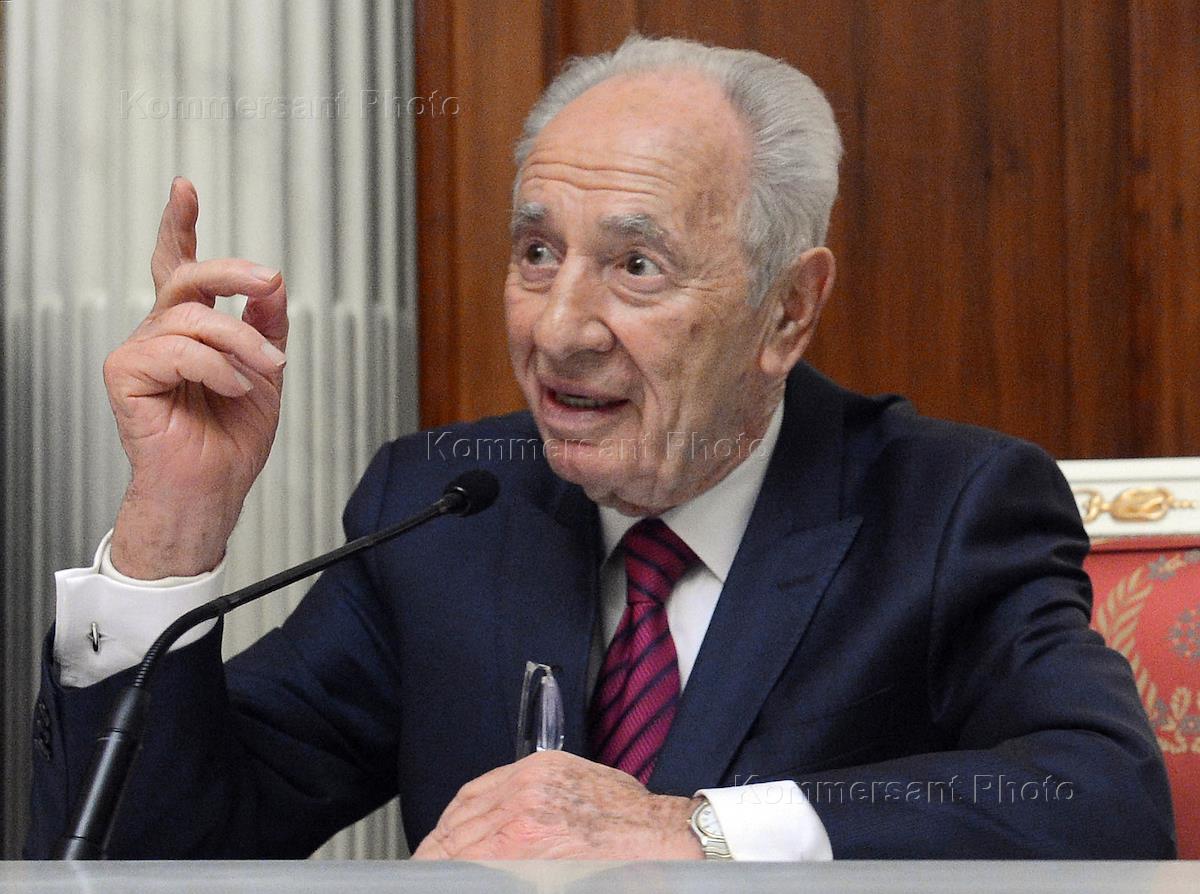 Президент Израиля Шимон Перес во время встречи с президентом России Владимиром Путиным во время…