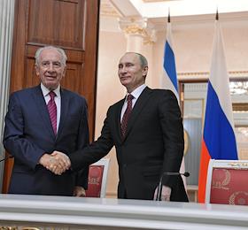 Президент Израиля Шимон Перес (слева) и президент России Владимир Путин (справа) во время…